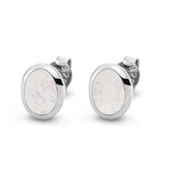 Cocktail Ohrstecker Oval Grauer Mondstein